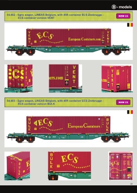 54.402 - Sgns wagon, LINEAS Belgium, with 45ft container ECS Zeebrugge : NEW 23 ECS container version VENT 54.403 - Sgns wagon, LINEAS Belgium, with 45ft container ECS Zeebrugge : NEW 23 ECS container version BULK 15